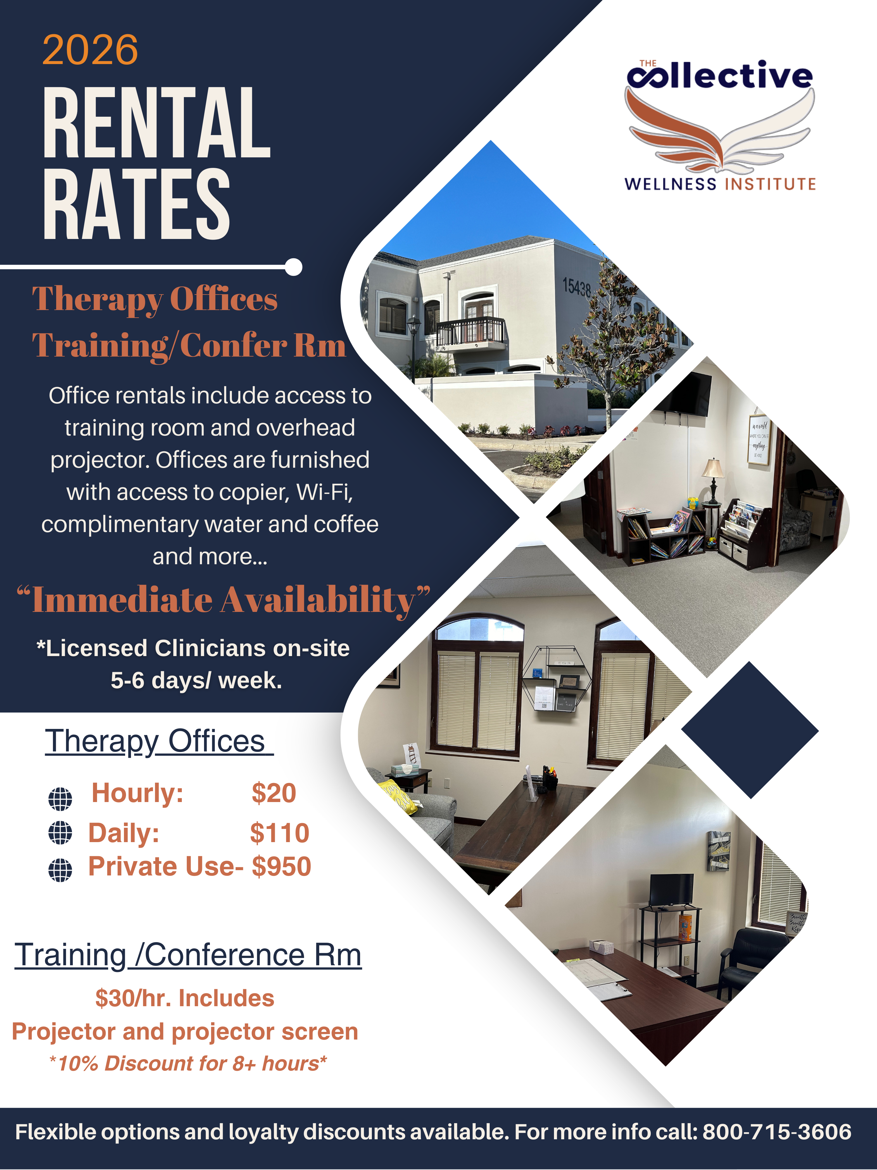 All office rentals are available hourly, daily, weekly or monthly. Wifi and access to our community room. To find out more, click below for our rates.